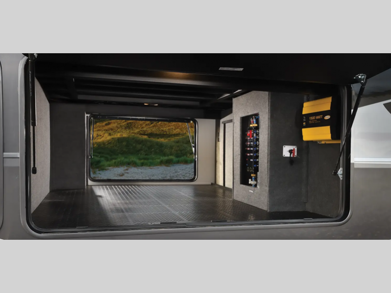 You will truly appreciate the stackable washer/dryer because it will allow you to travel without restraint, and the Truma Aqua Go Comfort on-demand hot water heater will give you hot water whenever you need it. You'll stay entertained with a Samsung LED Smart TV in the living room and a 40" LED TV in the bedroom, and the 200W solar panel will provide some off-grid capabilities.